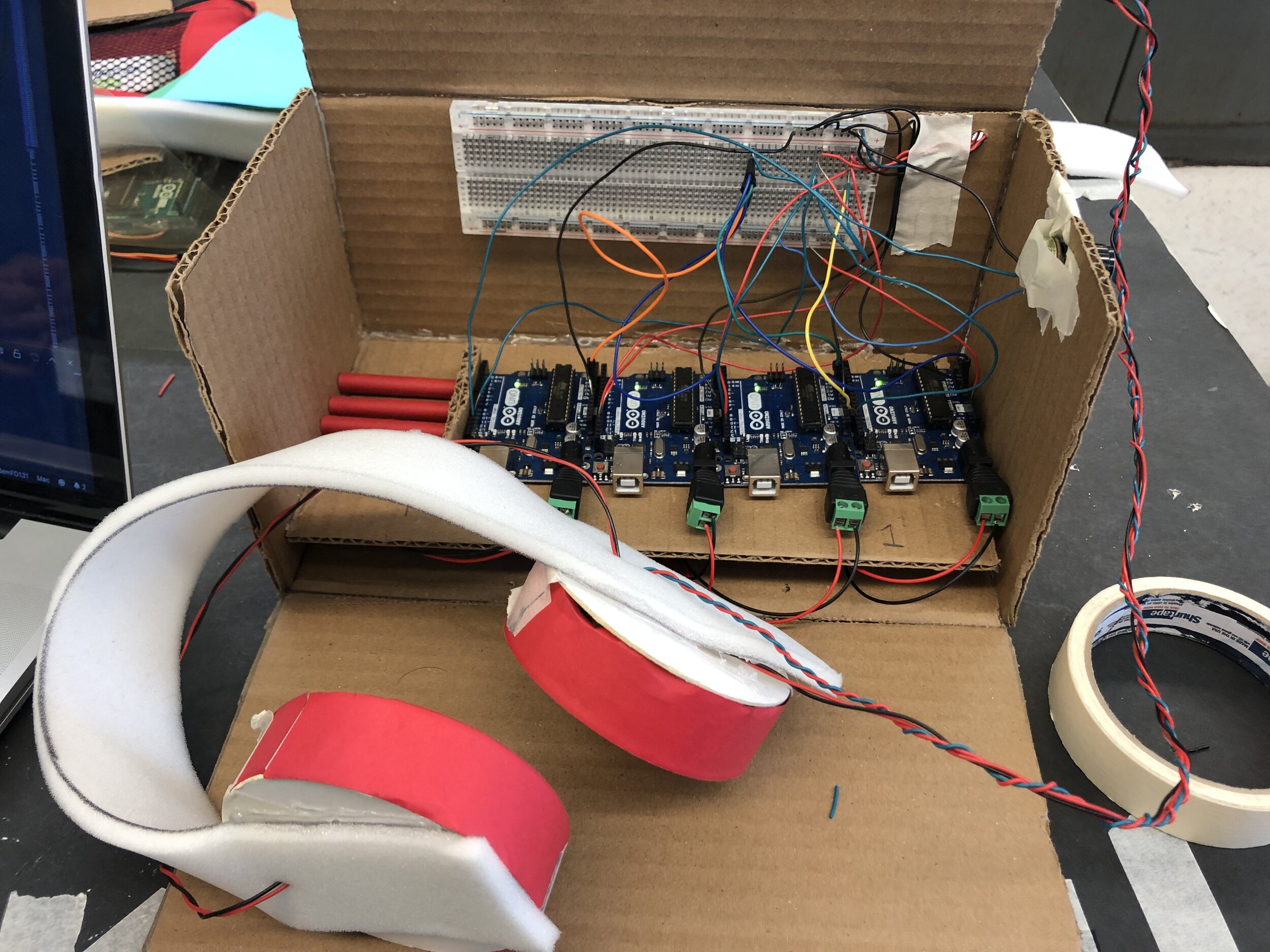 In the first phase of the program, beginning with an introduction to tool usage and safety, students learn fundamental building and fabrication skills, basic electronics, and mechanical movement. In subsequent weeks of the program, fundamental skills are built on and supplemented with wearable electronics, Arduino, piezo mics and a variety of sensors. Finally, students combine their favorite parts of the program to create a Synthesis project that showcases their new skills.